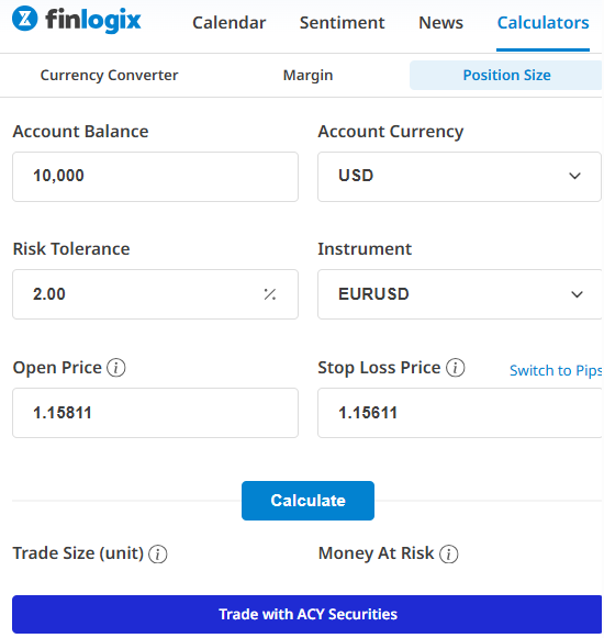 除了仓位计算器,你也可以同时使用 Finlogix 的经济日历,帮助你了解重要事件对市场的影响。