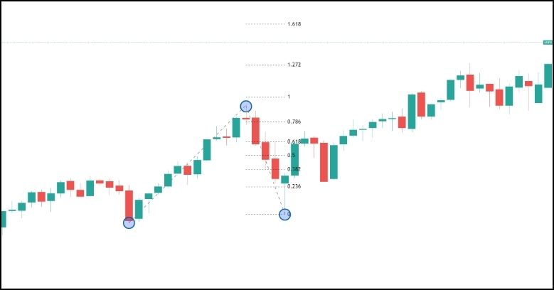 | 1 | 回撤线 | 标记入场点(0.5、0.618附近)与结构区 |
