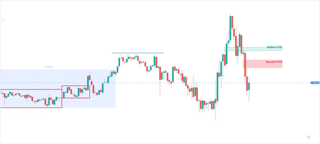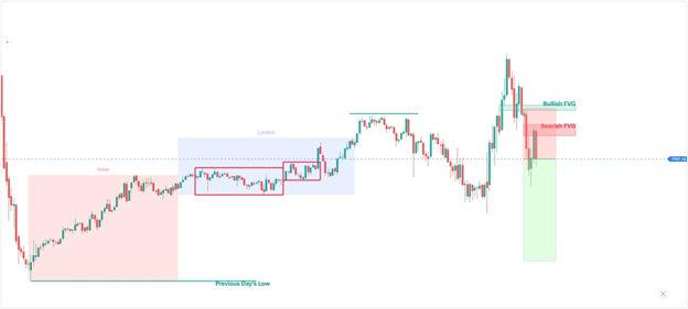 扫过伦敦低点后,看涨的公平价值缺口(Bullish FVG)未能守住。